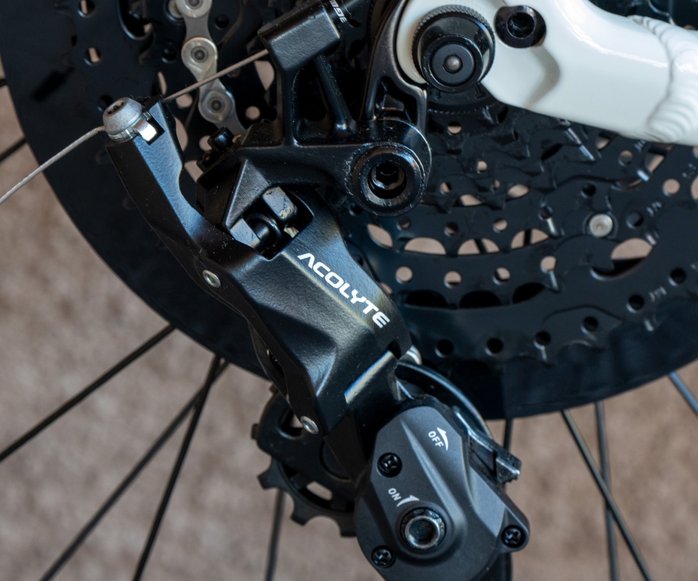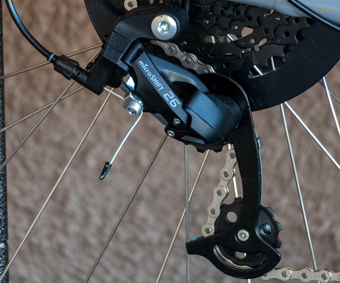 Optimized for simplicity, the Sirrus comes with only one shifter and a wide range gear set. This makes it easy to find the perfect gear, but doesn't limit you on getting up the hills or catching the speed you want.