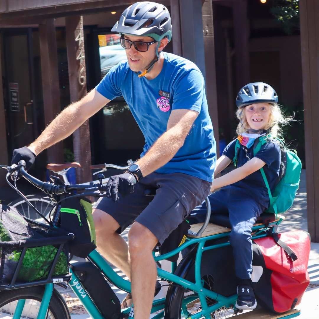 Bryce: The cargo bike saves us a ton of time on the drop offs and pick-ups. And I super enjoy it. It is the best way to dip your toe into the Cargo bike waters. Someone who hasn't done a lot of biking can pick up their kid or drop them off, or both, and see the instant benefits of skipping the long line of cars and being engaged with their kid or kids on the way to school.