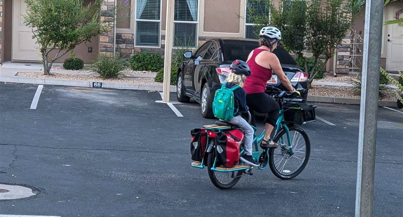"Here in Saint George, it's mainly that we enjoy biking. And you can do it year-round. I think some of it is also enjoying the way to work, the cost savings on parking, the availability of parking which will decrease, and Orion enjoys being on the bike more rather than just being in the car. The car is a continuation of sleep, which is not the best way to deliver him to school. After riding, he's awake and he's moving.