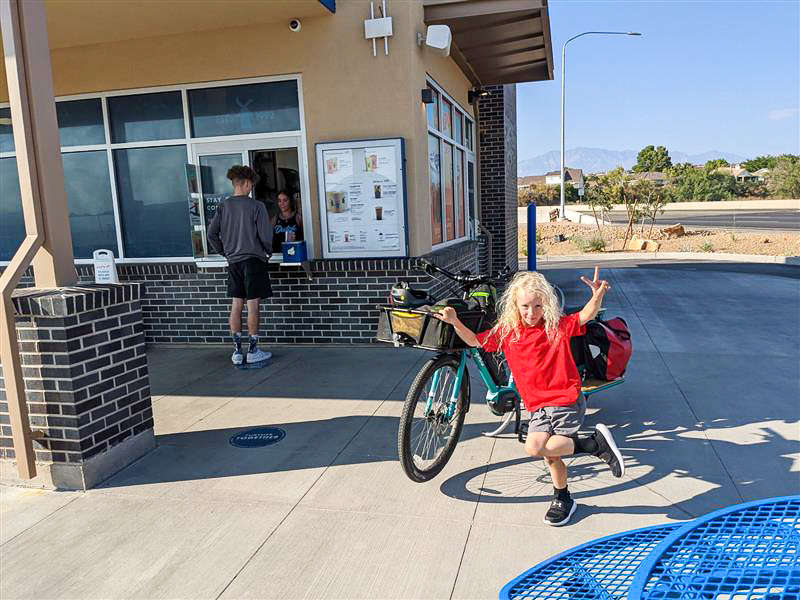 Bryce Weber, Rider Care Specialist at Red Rock Bicycle Co., and his family got a Yuba Boda Boda Cargo bike just a few weeks ago. His wife Jennifer's broken arm almost derailed the plans, but they decided to move ahead with the purchase regardless. They considered that they would need to get the bike before school started to get into a bicycling routine right away: "We figured that without a routine we wouldn't be able to adjust as easily." They were right. The whole family slipped into a nice routine, and cargo biking turned out to have some huge benefits for them.