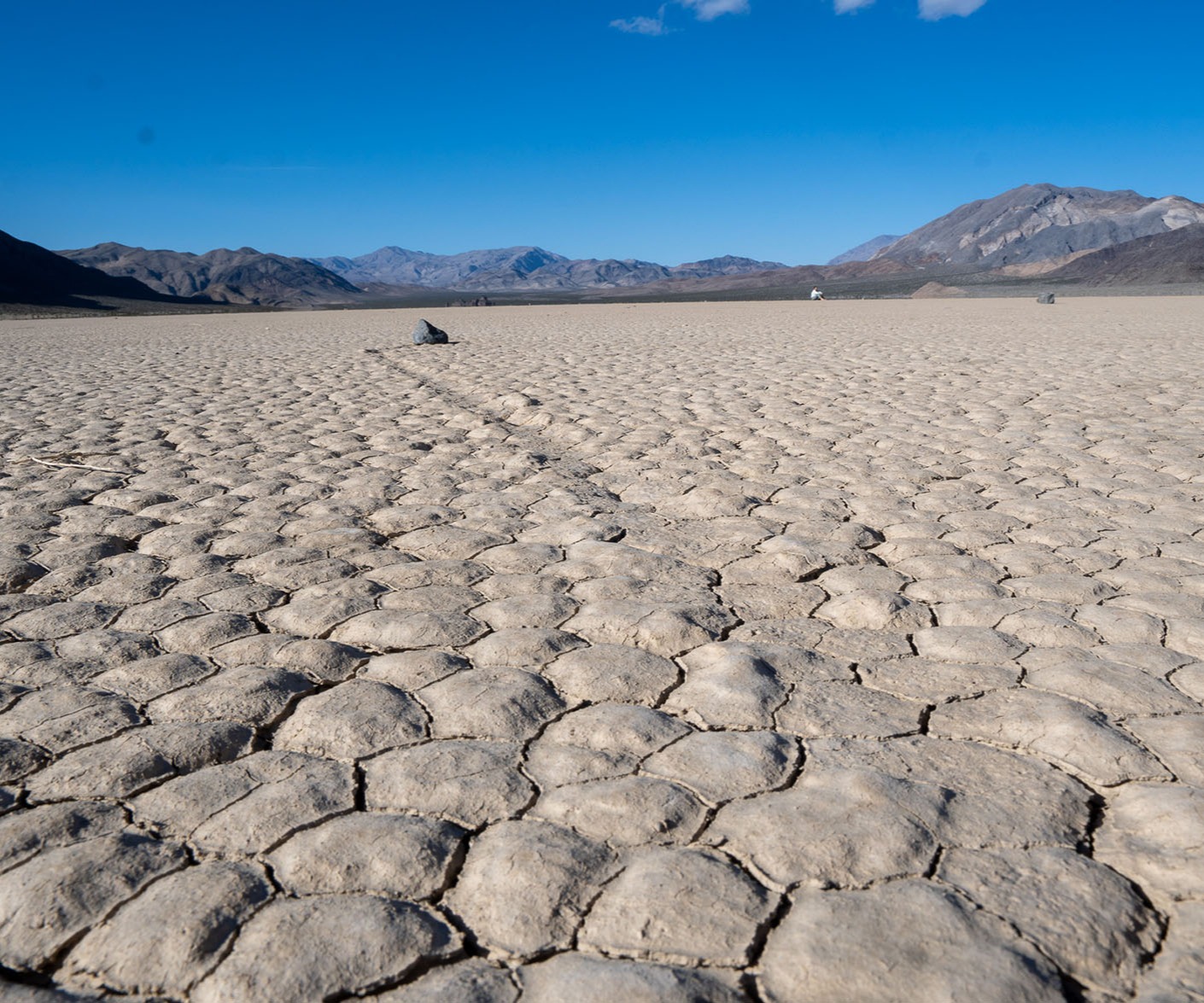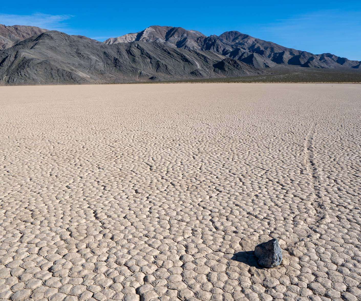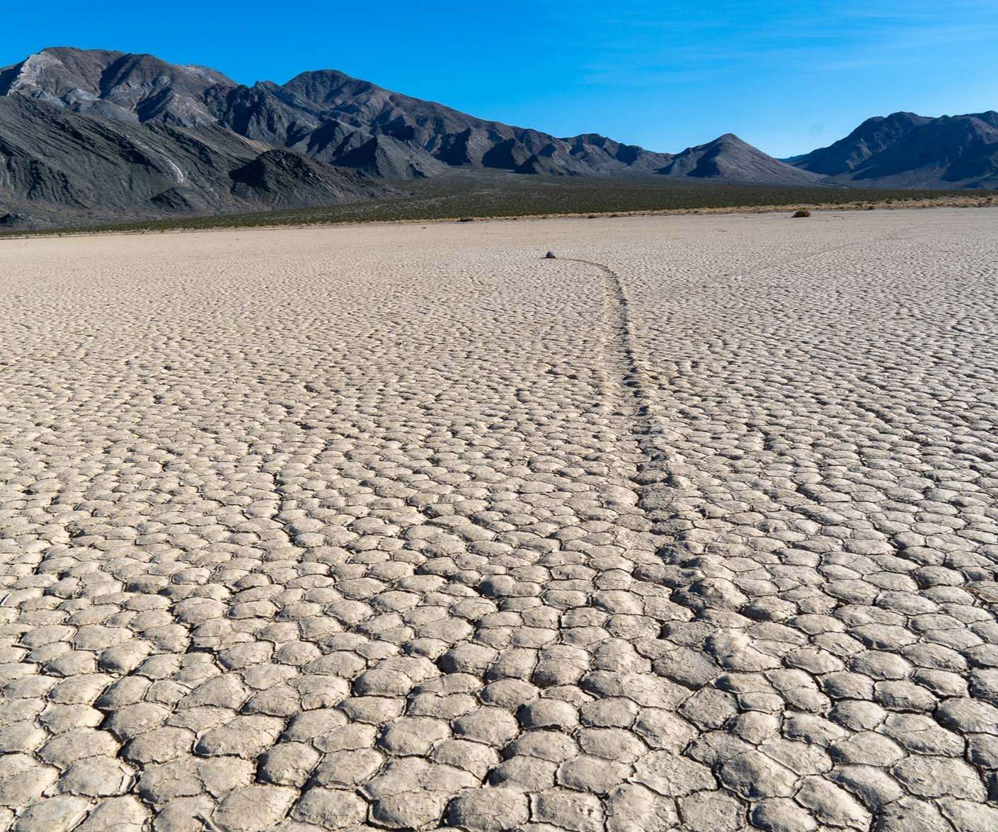 If you head to the south end of the Racetrack, you will find large rocks scattered across the flat lake bed. These rocks leave trails. Often, two rocks will have parallel tracks leading up to their current location as if they were dragged by some unknown force in a race to get to where they ended. Some of these rocks are big exceeding 700 pounds.