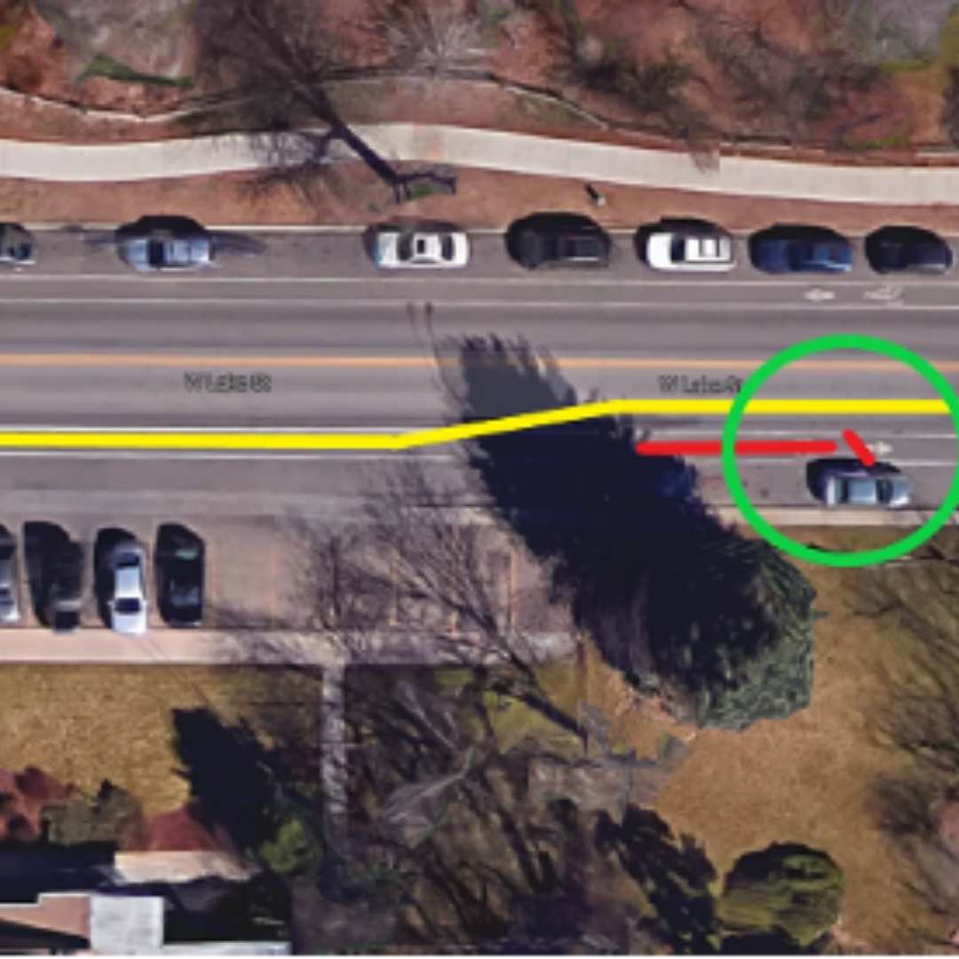 To avoid crashing into an opening car door, you can 'take the lane.' Taking the lane means moving out of the bike lane and into the rightmost travel lane for cars well in advance of encountering vehicles parked closely to the bike lane (see the yellow line in the picture above). The idea here is to avoid the 'door zone', which extends about 3 to 4 feet from a parked car, and to avoid it early so that drivers traveling behind you can see you. For that same reason, you'll want to stay in the travel lane for cars when there are multiple obstructions along the way (see image to the left).